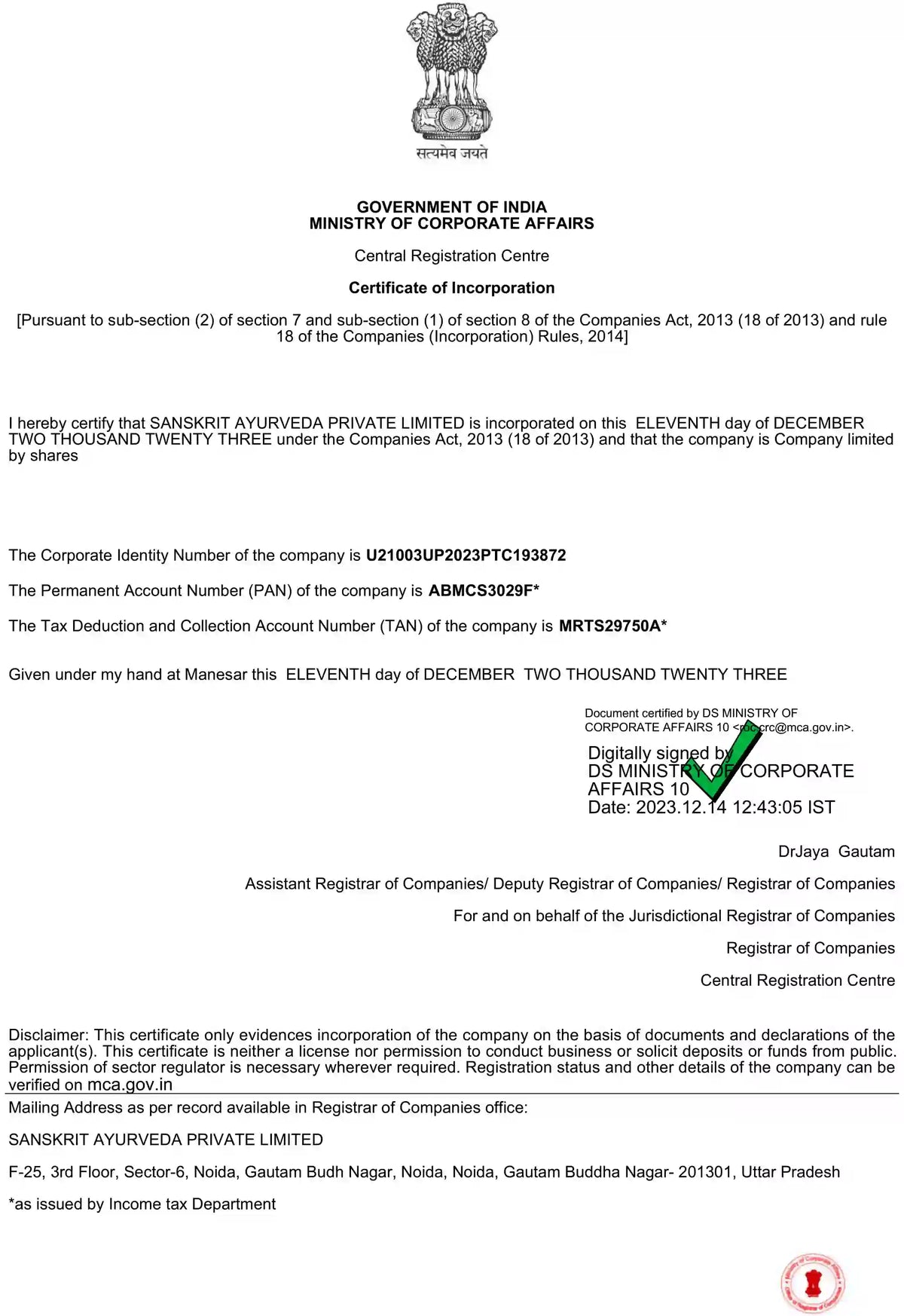 Certificate of Incorporation