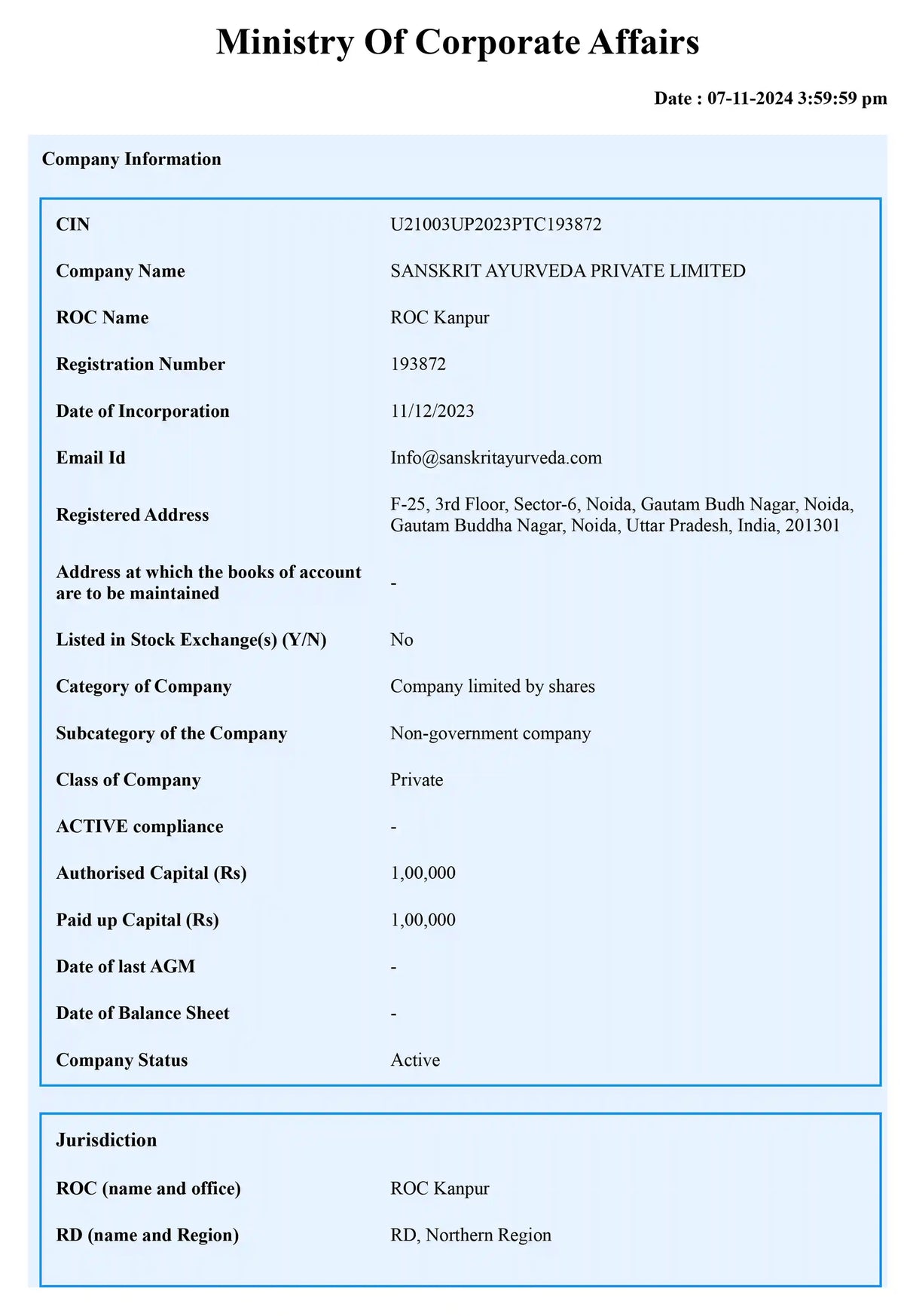 Ministry Of Corporate Affairs